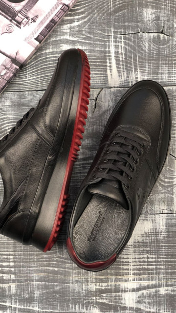 Кроссовки FAST STEP выполнены из натуральной телячьей кожи чёрного цвета. Красные вставки по бокам м..